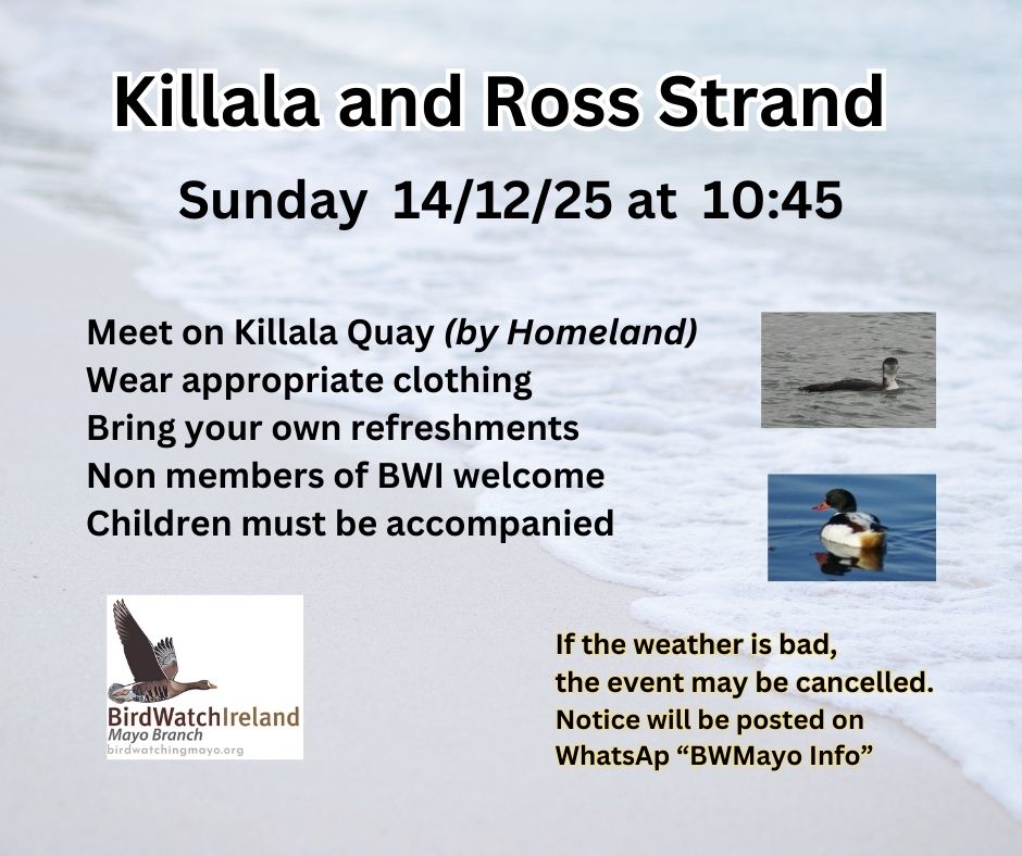 | Sun 14/12/2025 | Killala & Ross Strand | Wintering Waterbirds | TBC |